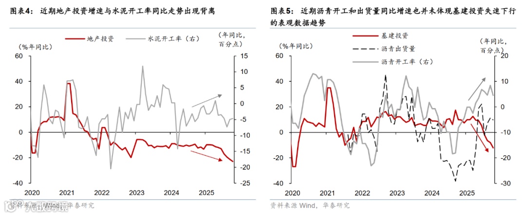 一方面,中国经济的韧性可能强于近期表观宏观数据隐含的趋势。统计局公布的数据显示,今年3季度以来,内需、尤其是固定资产投资数据有所走弱,但从行业中观需求指标、价格走势以及企业经营数据等多个维度观察,微观体感并未出现同幅度的下滑(参见《如何理解中观数据“温差”?》,2025/11/23;图表4和5)。港口高频指标亦显示,11月出口或有所改善,我们预计同比增速回升至3%左右(参见《11月预览:物价指标有所改善》,2025/12/2)。