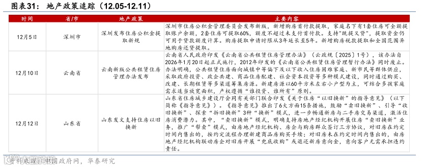 地产政策方面:1)12月5日,深圳市住房公积金管理委员会发布新版,新增购房首付款提取,家庭名下有1套住房可全额提取账户余额,2套住房可提取60%,额度不超过未支付首付款。支持"既提又贷",提取资金仍可用于贷款额度计算。购房提取申请时限从3年延长至5年。新增购房税款提取和全国范围异地购房还贷提取。