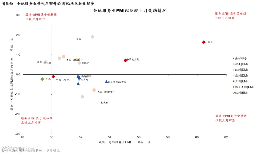 1. 全球制造业PMI回升至荣枯线以上,服务业PMI变动不大