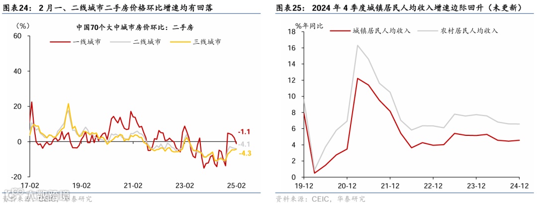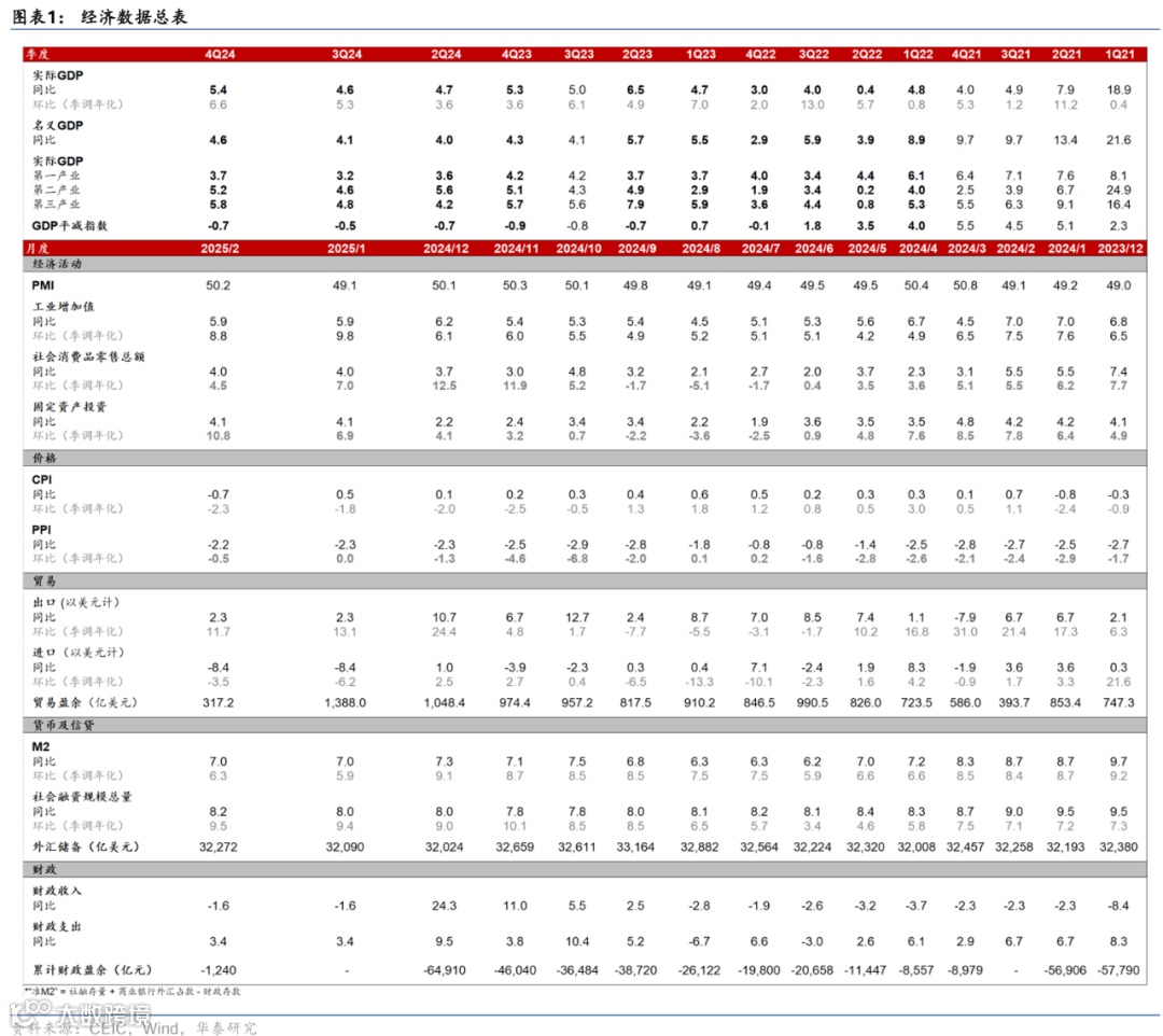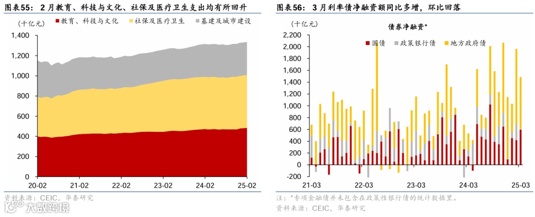 政策及事件:1)3月5日,全国两会召开,2025年实际GDP增长目标确定在5%左右,CPI目标下调至2%左右,赤字规模(5.66万亿元)及赤字率(4%)均创历史新高,提振消费在宏观政策中的站位明显提升。2)3月6日,经济主题记者会进一步细化提振消费、稳地产、稳股市、稳外贸等方面政策。3)3月16日,中办、国办印发《提振消费专项行动方案》,从城乡居民增收促进行动等八方面部署30项重点任务。4)3月24日,央行发布2025年3月MLF招标公告,称自本月起MLF将采用固定数量、利率招标、多重价位中标方式开展操作。