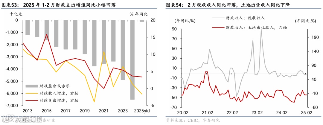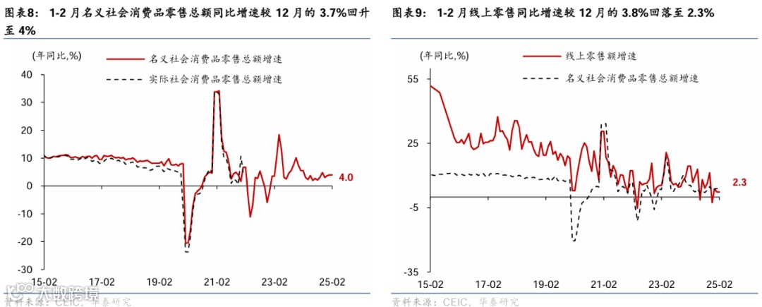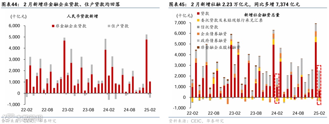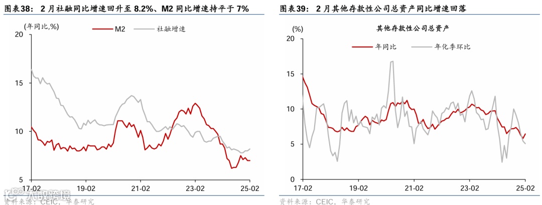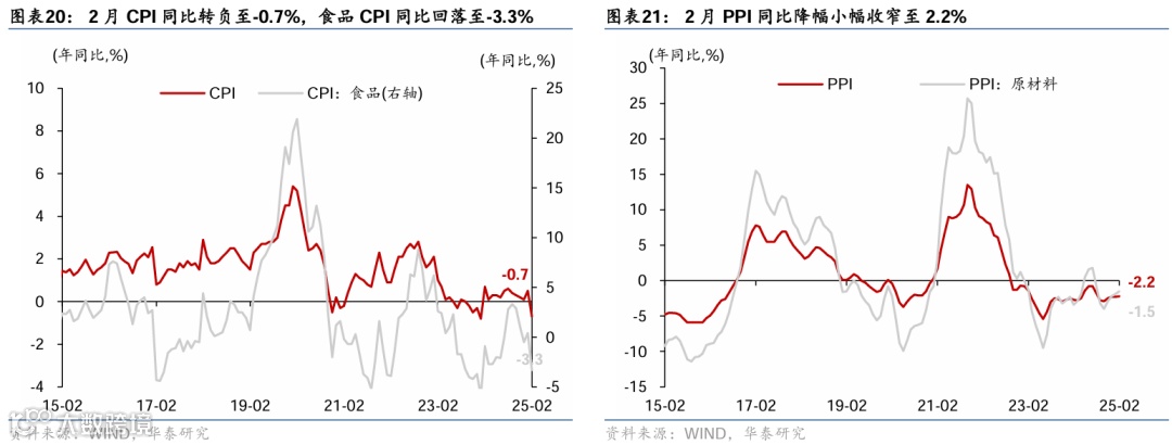 1-2月重要宏观数据回顾:1)1-2月工业增加值同比较12月的6.2%小幅回落至5.9%,而社零/固定资产投资同比从去年12月的3.7%/2.2%分别回升至4%/4.1%,闰年效应抬升基数、表观增速数据可能低估回升幅度;2)1-2月美元计价出口/进口同比增速从上年12月的10.7%/1%回落至2.3%/-8.4%;3)2月新增社融2.23万亿元,同比多增7,374亿元,政府债融资贡献新增社融近8成;2月M1同比增速从1月的0.4%放缓至0.1%;M2同比增速持平于1月的7%。4)2月中国CPI同比较1月的0.5%下降至-0.7%,PPI同比降幅较1月的2.3%收窄至2.2%。