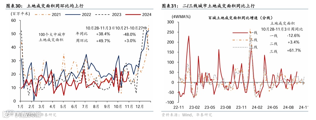 地产政策方面:1)11月1日,宁夏回族自治区住房和城乡建设厅联合自治区财政厅等部门印发《关于促进房地产市场止跌回稳平稳健康发展的若干措施(暂行)》,从严格控制增量、持续优化存量、提高供应质量等六个方面,制定出台20条具体措施,促进自治区房地产市场止跌回稳、平稳健康可持续发展。《措施》自印发之日起执行,有效期至2025年12月31日。2)11月4日,据“临安发布”消息,杭州市临安区住建局发布《关于进一步促进临安区房地产市场健康有序发展的意见》,重点提出对团购10套及以上新房的,给予实际购房总价1.5%的补贴。3)11月5日,苏州市区城中村改造工作推进会召开。市委副书记、市长吴庆文要求,要立足全局、分类施策,统筹谋划推进城中村改造。要充分利用政策资金,按照“拆除新建、整治提升、拆整结合”的思路,全域铺开城中村改造和现代化治理,积极落实购买存量房安置和房票安置,确保资源合理配置和有效利用。要结合城中村特点和项目实际情况,把握要求“明”、方案“细”、计划“详”、措施“实”的原则,因地制宜、各显身手,扎实推进改造项目实施。