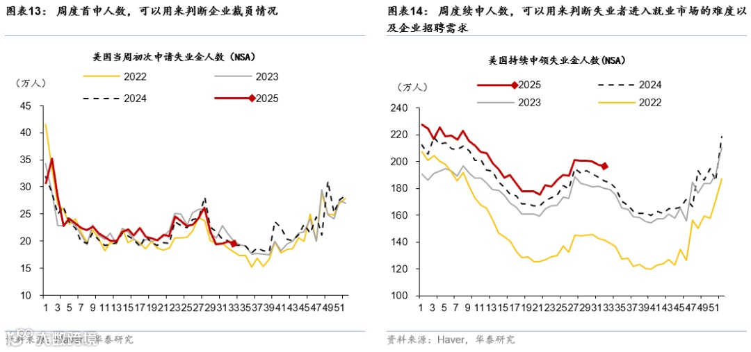 尽管非农数据波动变大,但非农仍然是美国经济较为及时的、全面的追踪指标。由于非农调查覆盖样本量大,即使样本应答率下降,但规模仍然较为可观。此外,企业调查的应答率延续回落,但非农终值的收集率与疫情前水平接近,终值与趋势值的可信度仍然相对可靠。不过,非农在疫情后的波动加大、下修频率走高也同样是事实,因而需要通过更多就业指标来判断美国就业市场的真实情况。我们认为,驱逐非法移民对美国2025H2劳动供给冲击加大,新增非农就业水平或结构性下降,叠加关税上升对需求的冲击,就业市场短期仍有压力(参见《移民收紧或大幅压低美国“均衡”新增非农水平》,2025/8/11)。