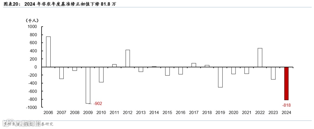 非农年度例行修正幅度超预期:9月进行的年度基准修正中,若BLS大幅下修,或导致市场对美国就业市场衰退的风险明显上行。
