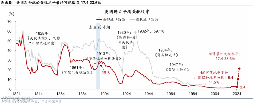 2.美国对钢铝、汽车、药品、芯片等关键战略商品额外征税可能难以避免,相关税率或在25%左右;最终再度推高美国对全球关税水平约5个百分点