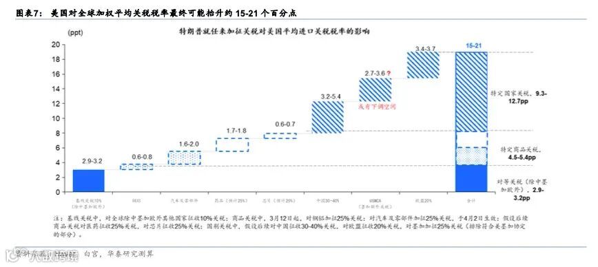 4.综上,美国对全球加征的关税水平最终可能落在15-21%左右的范围