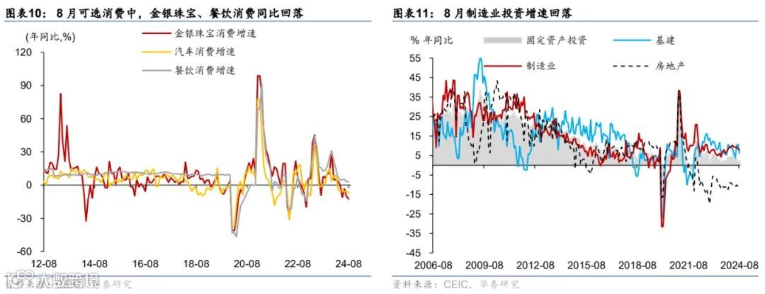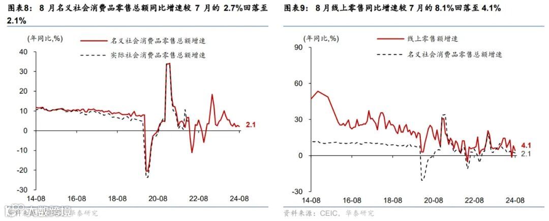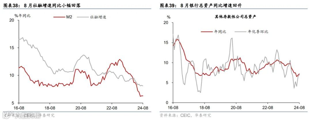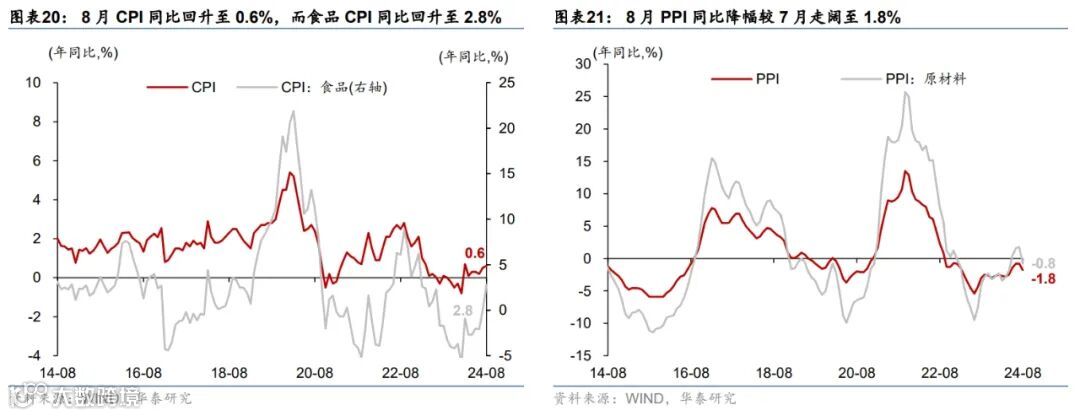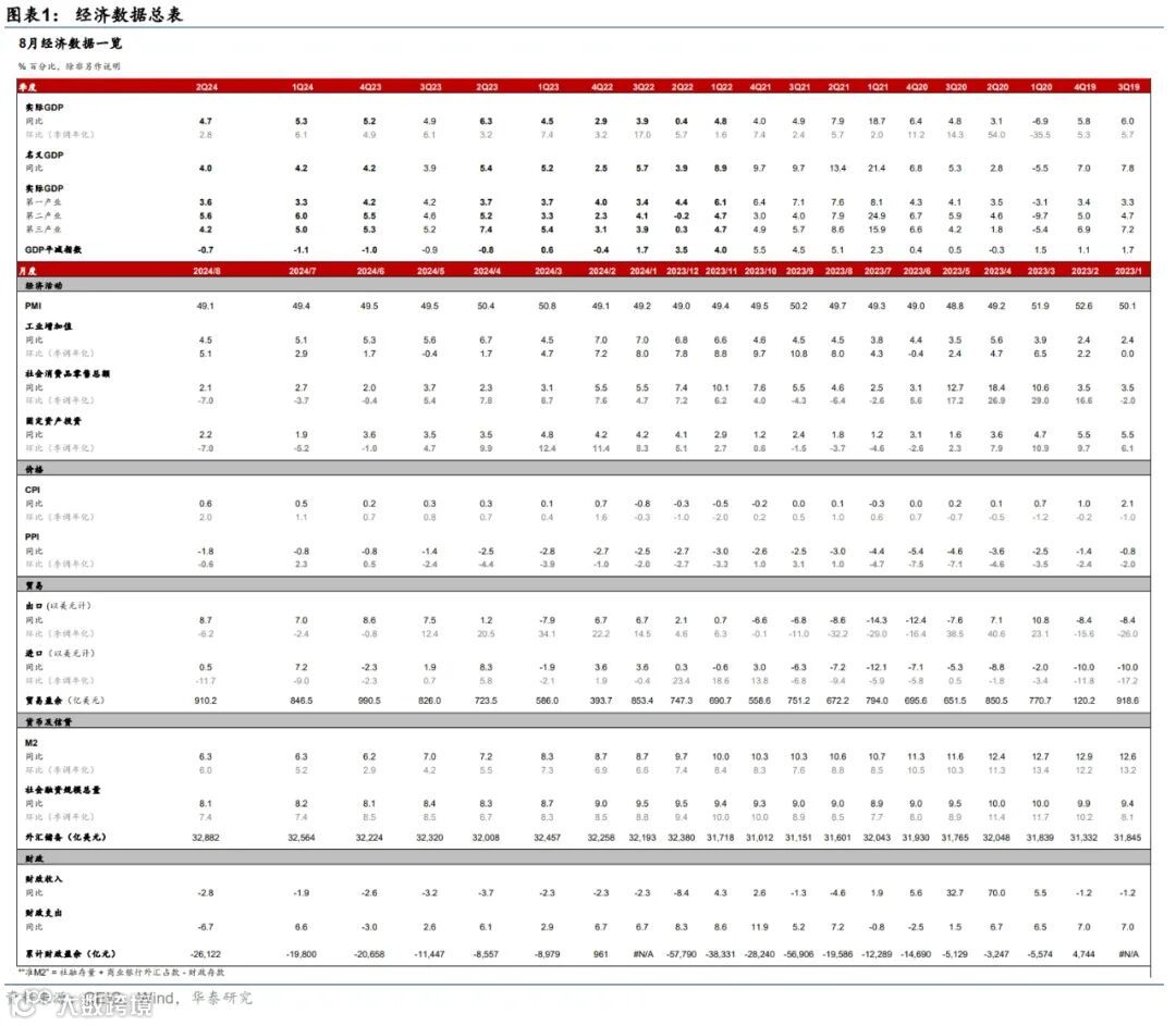 8月重要宏观数据回顾:1)8月工业增加值/社零同比增速回落至4.5%/2.1%,而固定资产投资同比增速小幅回升至2%。2)8月美元计价出口同比增速从7月的7%回升至8.7%,进口同比增速则由7月的7.2%放缓至0.5%。3)8月中国CPI同比较7月的0.5%略上行至0.6%,PPI同比降幅较7月的0.8%走阔至1.8%。4)8月新增社融主要由政府债与票据融资拉动,M1同比降幅从7月的6.6%走阔至7.3%。