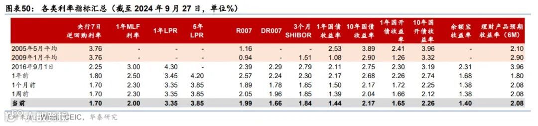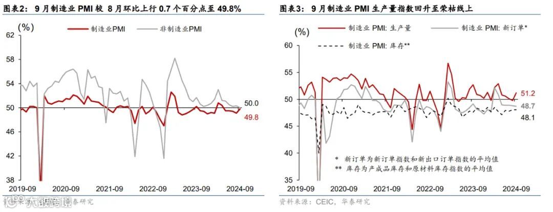 政策及事件:1)9月13日,第十四届全国人大常委会第十一次会议通过实施渐进式延迟法定退休年龄的决定。2)9月24日,央行、金融监管总局、证监会主要负责人宣布近期全面降准50个基点,下调7天逆回购操作利率至1.5%;并下调存量房贷利率约50个基点至新增房贷利率水平,并首度推出股票回购增持专项再贷款(首批3,000亿元)和证券、基金、保险公司互换便利(首批5,000亿元)两个创新工具。3)9月26日,政治局会议强调要加大财政货币政策逆周期调节力度,包括发行使用好超长期特别国债和地方专项债、降低存款准备金率,实施有力度的降息等。