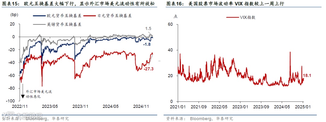 拜登政府公布芯片出口限制;特朗普宣称将设立“对外税务局”;中美首脑通话。1月13日,拜登政府公布对英伟达及同类公司AI芯片出口实施新的全面限制,确立了向大部分国家出口的算力上限。白宫国安顾问沙利文称,特朗普上台后很可能会维持该限制措施不变。1月14日,美国当选总统特朗普在社交媒体宣称将设立“对外税务局”,专门负责收取进口关税和所有来自海外的收入。1月16日,美国提名财长贝森特在听证会上表示,延长2017年特朗普减税法案,控制财政赤字,但不会影响社保方面支出;关税服务于三个政策目的—解决贸易失衡、增加收入,以及实现地缘战略目标;美元走强将抵消部分关税带来的通胀效应。据财新网报道,1月17日,中美首脑通话,美方称双方讨论了贸易、芬太尼和TikTok等问题。