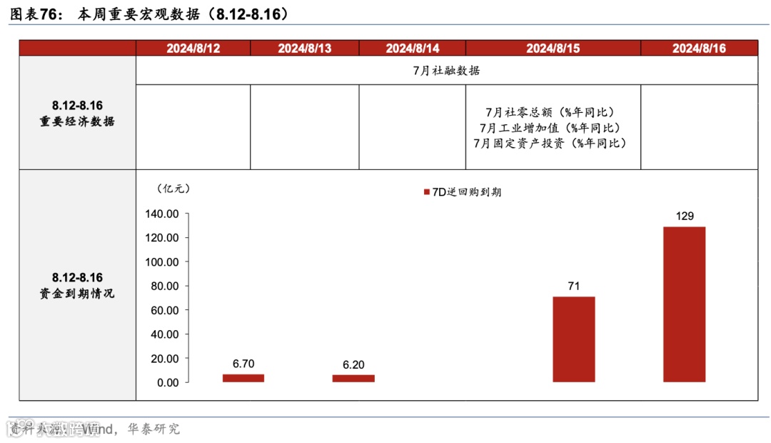 本周重点关注7月经济活动数据(8/15)、周内将公布7月社融数据。