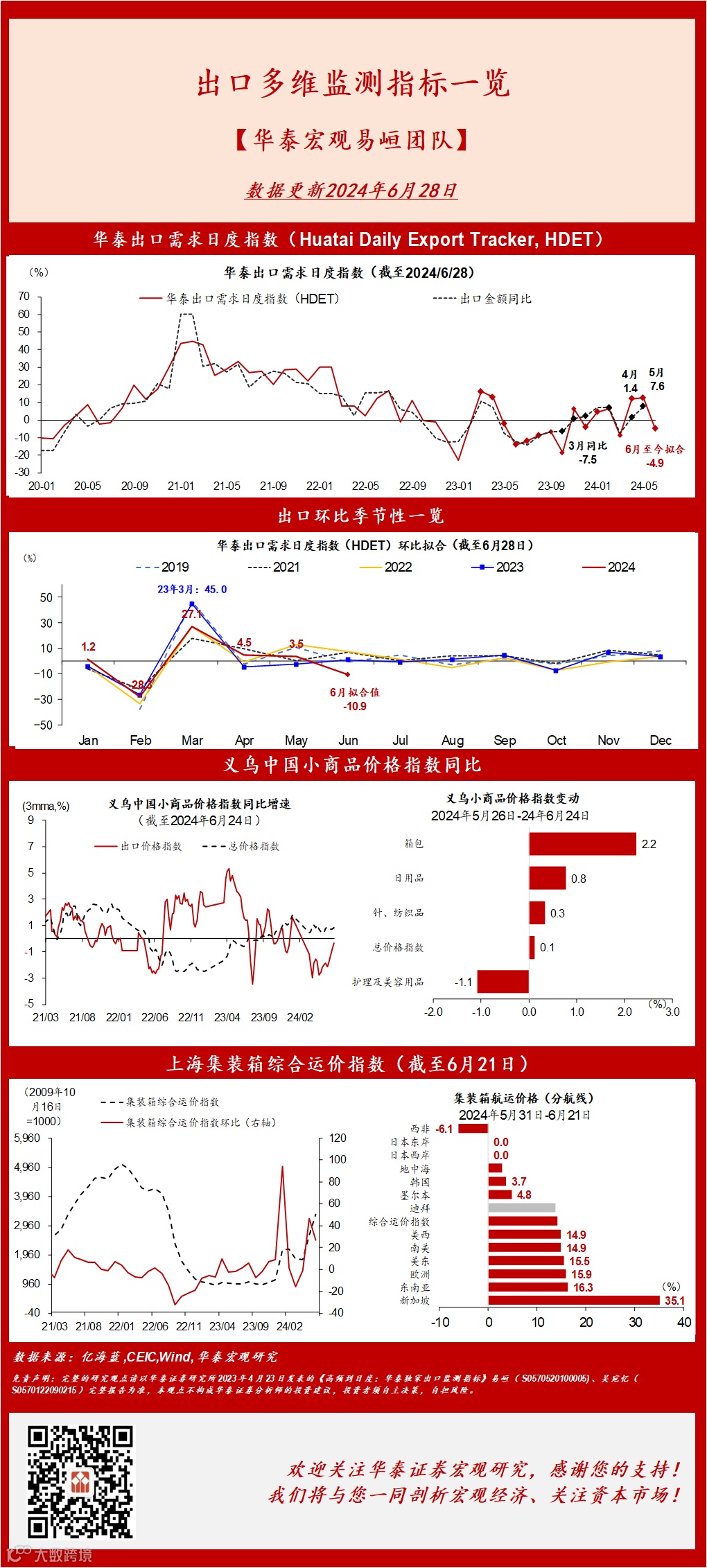 免责声明:完整的研究观点请以华泰证券研究所2023年4月23日发表的《高频到日度:华泰独家出口监测指标》易峘(S0570520100005)、吴宛忆(S0570122090215)完整报告为准,本观点不构成华泰证券分析师的投资建议,投资者须自主决策,自担风险。