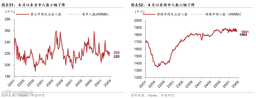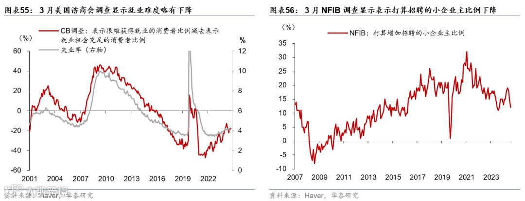 3月新增非农数据反弹,主要受服务部门和政府部门就业回升推动。3月美国新增非农就业22.8万,明显高于预期的14万;失业率回升0.1pp至4.2%,高于预期的4.1%;小时工资增速环比0.3%,符合预期。分项看,服务部门就业回升主要是受寒冷天气影响的零售业和休闲酒店业转暖,政府部门就业反弹主要是DOGE行动或有放缓。整体看,就业数据喜忧参半,3月岗位空缺大幅不及预期,但4月首申数据仍有一定韧性。3月JOLTS岗位空缺大幅下滑且不及预期,NFIB企业招聘意愿也整体回落;但4月全国层面首申人数未显著上升,续申人数亦有所下降,且前期大幅走高的联邦雇员首申与华盛顿特区首申人数明显回落。