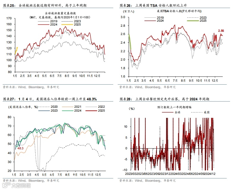 美国12月新增非农就业大幅超预期;ISM服务业也超预期改善。新增非农就业12月录得25.6万,大幅高于预期的16.5万(彭博一致预期,下同),10-11月累计上修1.6万;失业率下降至4.1%,低于预期的4.2%;小时工资增速环比0.3%,符合预期。此外,劳动参与率持平于62.5%;周均工作时长34.3小时,与预期一致。12月新增非农就业大幅超预期,背后既有经济动能回升的提振,也存在气温,季调等因素的扰动。往前看,大选后小企业雇佣意愿明显回升,叠加11月岗位空缺数据有所改善,预计非农就业未来仍可以维持在相对有韧性的状态。美国ISM非制造业PMI回升至54.1,超过预期的53.5。