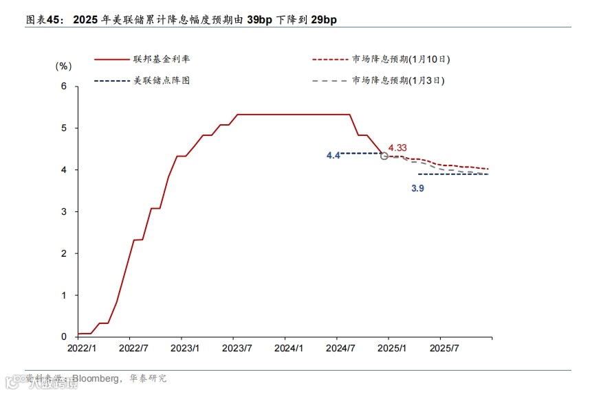 美联储会议纪要暗示降息速度将放缓;特朗普否认收窄关税计划;法国央行行长支持降息;加拿大总理拟辞职。美联储12月货币政策会议纪要显示,由于通胀风险较高,美联储官员决定在未来几个月放慢降息步伐,利率可能会在当前水平维持较长时间。联储理事鲍曼称,通胀存在上行风险,12月就应该支持FOMC暂缓降息。1月6日美国当选总统特朗普否认有关他正考虑收窄关税计划的报道,称其相关政策不会缩水。此外,据报道特朗普将通过宣布国家经济紧急状态(IEEPA)来获得对关税实施的广泛管辖权。1月9日法国央行行长Villeroy表示,只要通胀回落符合预期,欧洲央行应该每次会议都降息,直至政策利率达到中性水平。1月9日加拿大总理特鲁多宣布辞去自由党党首一职,并在选出新党魁后卸任总理。