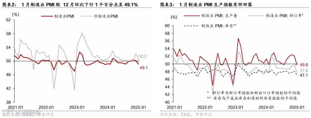 春运开启,居民出行活动强于2019年同期水平,跨境游领跑;工业生产季节性回落,地产成交整体有所放缓。出行及消费方面,春运前12天,全社会跨区域人员流动量较2019/2024年同期走高10.4%/12.7%;国家移民管理局预测春节假期全国日均出入境人员同比增长9.5%,民航局数据亦显示2025年春运入境机票预订量同比增长47%;1月1-19日,乘用车日均零售销量同比增速较12月的11%回落至-5%。抢出口及春节错位推高出口高频指标,1月1-26日,HDET高频指标显示1月出口同比或维持较高增速。工业生产进入淡季,高炉/焦化/水泥开工率月均环比回落0.7/2.5/14.7个百分点,建筑钢材成交量月均亦环比回落36.4%。商品房成交同比放缓,1月1-26日,60城新房/26城二手房成交面积同比较12月的15%/54.2%放缓至-1.2%/7.3%,其中一线城市新房/二手房成交同比上行13.8%/34.9%。