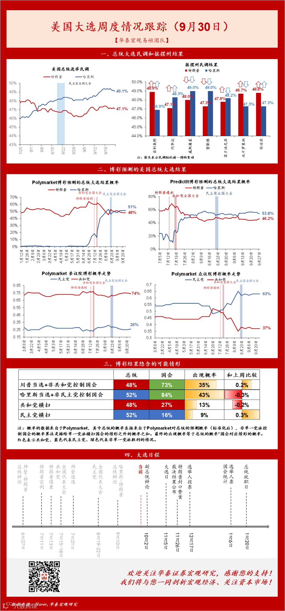 后续日程:距离大选还有36天,重点关注北京时间10月2日上午九点的沃尔兹、万斯副总统辩论。