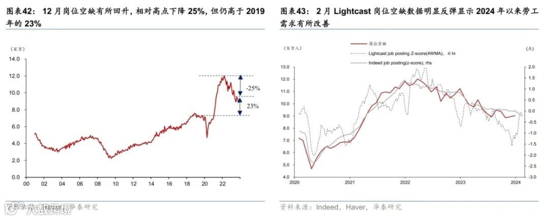 1月新增非农就业和小时工资增速均超预期回升,美国就业市场仍然偏紧。1月美国新增非农35.3万,大幅超过彭博一致预期的18.5万人,11-12月新增非农就业累计上修12.6万人。分项来看,商业服务、医疗保健等服务部门就业表现强劲,商品部门就业小幅放缓。非农就业中周期性相关的行业也连续2个月回升,符合美国经济动能偏强的指示。小时工资环比增速回升0.2pct至0.6%,高于预期(0.3%)。部分劳工指标也有所改善,12月岗位空缺小幅回升;1月咨商会就业机会充足率指标小幅改善;首申人数维持在低位。但劳工市场再平衡过程仍在持续。2月Indeed岗位空缺整体回落,领先指标离职率也进一步下降。往前看,关注3月FOMC议息会议(北京时间3月20日)和2月非农数据(3月8日)。