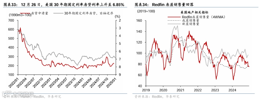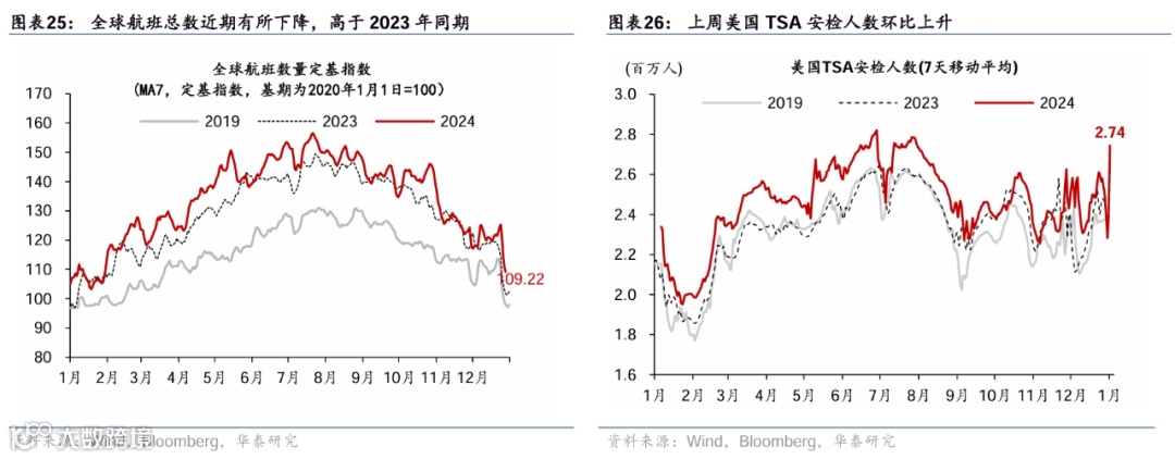 美国假日季消费加速增长,耐用品订单超预期下跌,新屋销售总数增长不及预期。美国假日季消费加速增长,万事达卡数据显示,今年美国假日季(11月1日-12月24日)零售销售同比增长3.8%,高于2023年同比增长3.1%,其中在线购物表现强劲,在线零售额同比增长 6.7%,而实体店销售额增长 2.9%。美国11月耐用品订单环比降1.1%,预期降0.3%,不过扣除飞机的非国防资本耐用品订单环比增长0.7%。美国11月新屋销售总数年化从10月的61万户回升至66.4万户,低于预期的67万户。