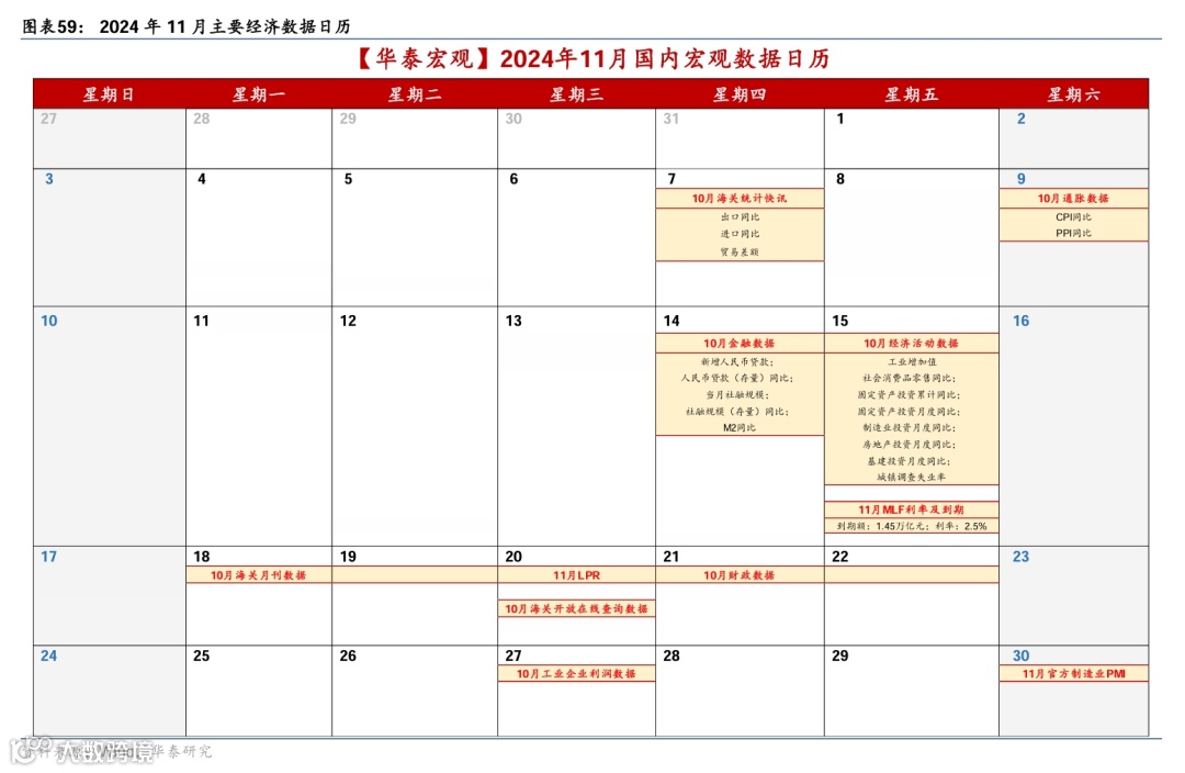 1)关注11月财政政策的实施力度。关注11月4-8日的人大常委会是否有增发特别国债和扩增地方债务限额等决议。