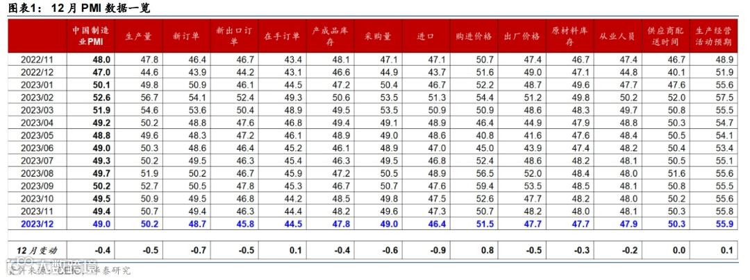 本文摘自2023年12月31日发布的《简评12月PMI数据》
