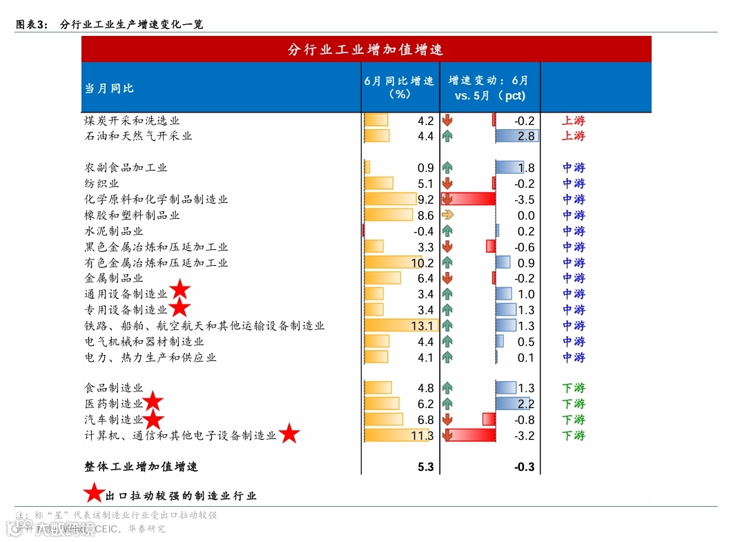 2. 工业:6月工业生产边际放缓、出口链仍形成支撑