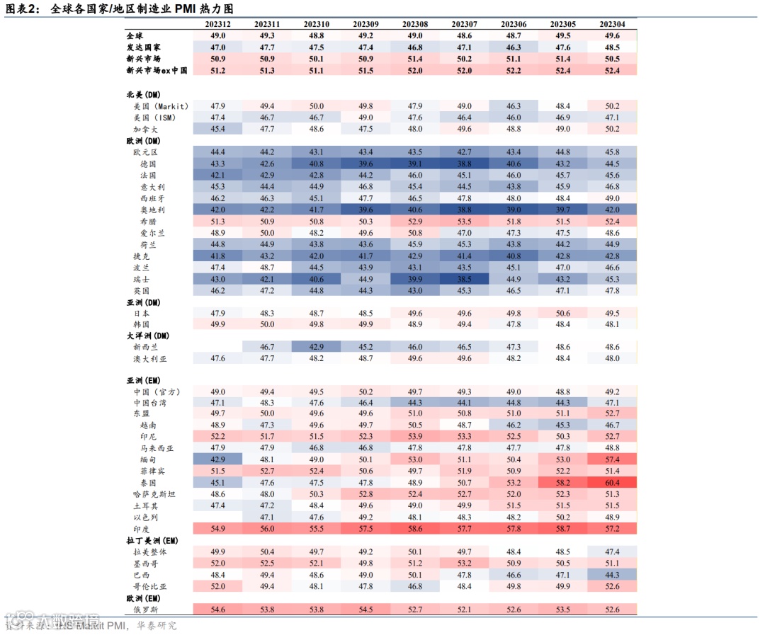 本文摘自2024年1月10日发布的《全球制造业PMI偏弱,价格暂时回升》