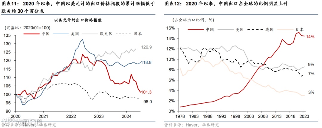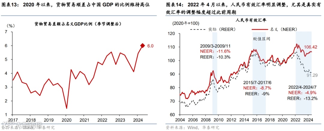由于中国制造业增加值占全球比例达到三分之一,中国是全球贸易最重要的“边际定价国”,所以,人民币的升值和贬值周期和小国截然不同的一个特点是,人民币有效汇率周期有比较强的“自限性”——以贬值为例,当人民币汇率累计贬值达到一定的水平,它国汇率也需要相应调整来对冲这一冲击,限制人民币进一步贬值的动力。基本面层面,中国外需和顺差的增长,因为其体量较大,也难以维持一个“线性外推”的增长速度。中国贸易顺差在2023年达到8,221亿美元的基础上,今年1-7月累计同比再度增长7.9%,达到全球贸易顺差总额的40%,这一比例显示,人民币的相对价格已经具有极高的竞争力。诚然,包括套息交易在内的其他因素可能会对跨境资本流动产生影响,如美联储降息时发生套息交易逆转,可能会带来跨境资本流入。