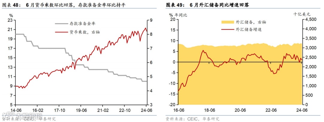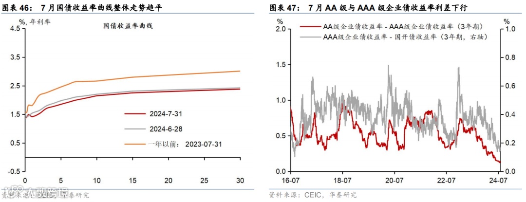 金融市场:央行下调7天逆回购利率、LPR报价和SLF利率10个基点,MLF利率20个基点,六大行亦下调存款挂牌利率,央行月内开展两次MLF操作共3,000亿元;7月利率债净发行同比多增。截至7月31日,1/10年期国债收益率较6月末分别下行12/6bp;银行间流动性偏松,R007/DR007月环比下行55/37bp。7月利国债、地方债和政策性银行债合计净发行8,000亿元,同比多增3,119亿元(6月同比少增731亿元)。汇率方面,截至7月31日,人民币兑美元汇率回升0.55%、但兑一篮子货币小幅回撤0.86%。