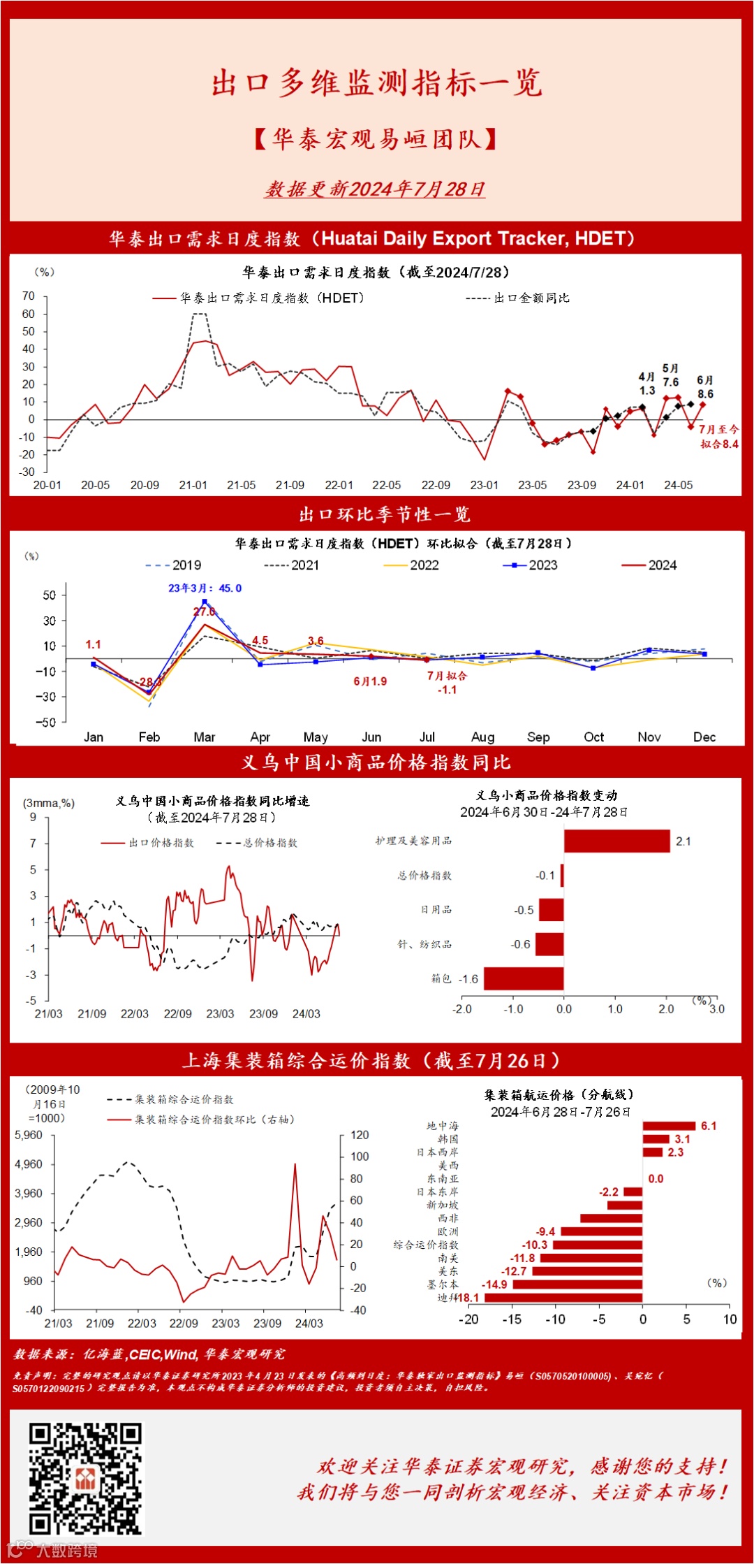 【华泰宏观】出口多维度指标一览(更新至7月28日)