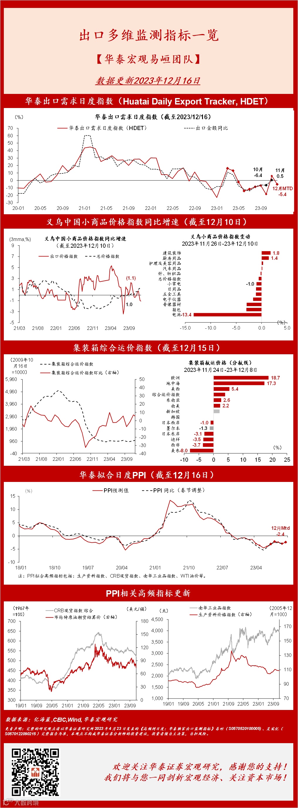 【华泰宏观】出口多维度指标一览(更新至12月16日)