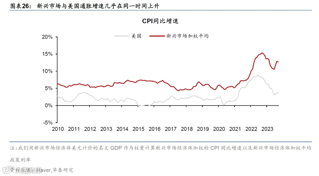 部分新兴市场国家比联储更早加息,通胀可控,有降息空间,带来缓冲。