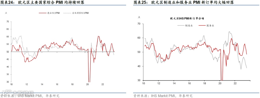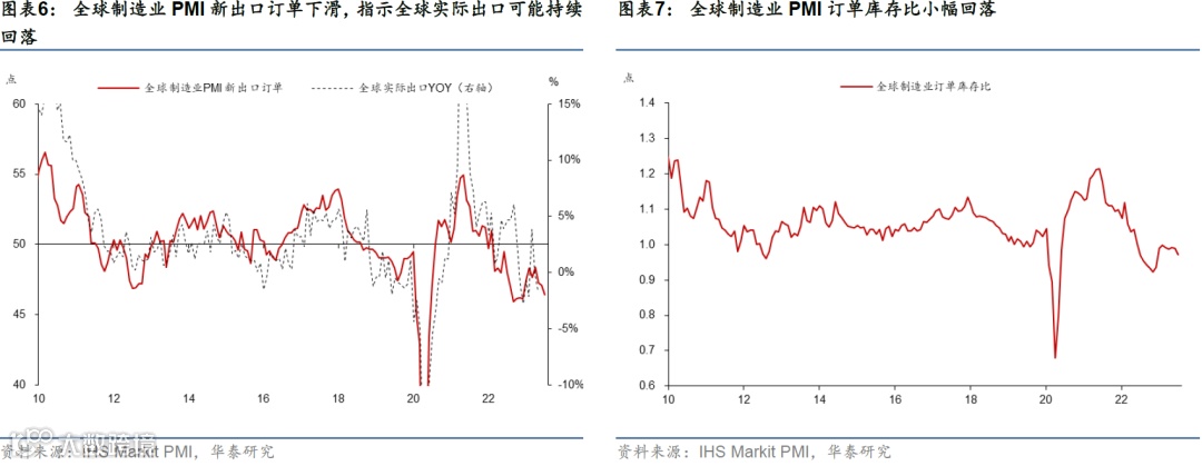 全球制造业新订单和新出口订单分别下降0.3pp和0.7pp至47.7和46.4。