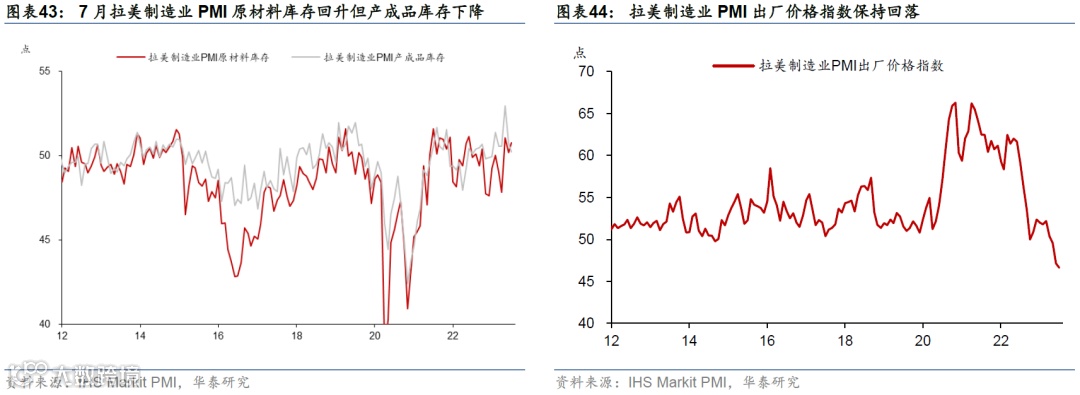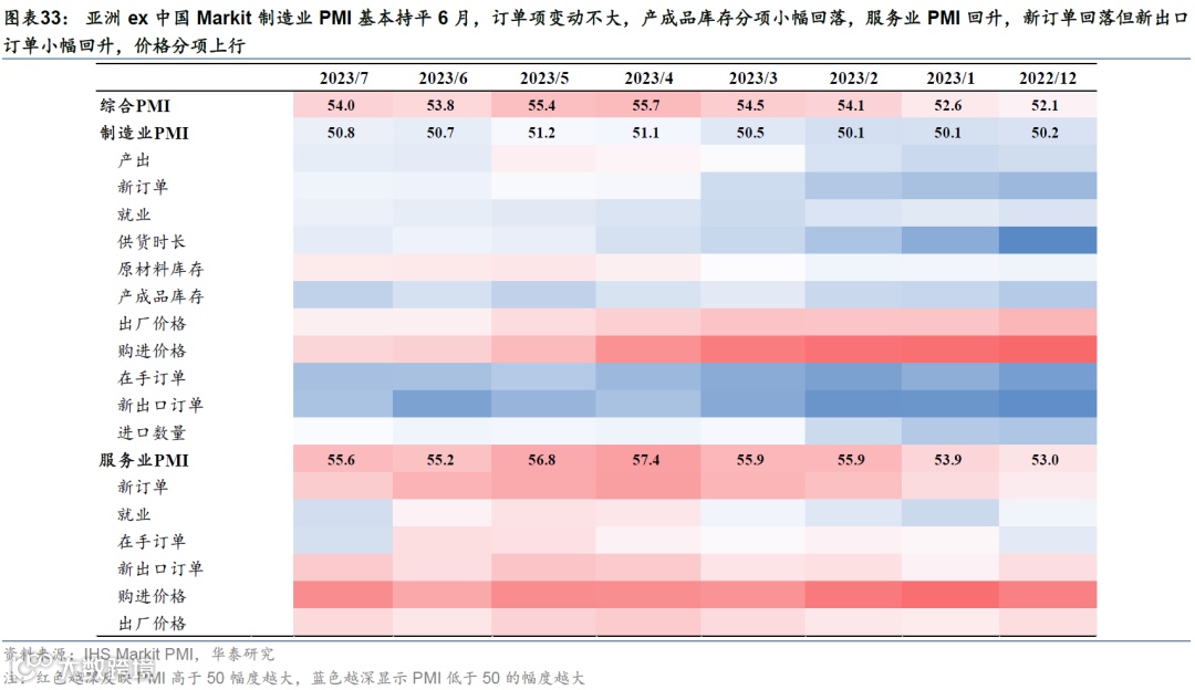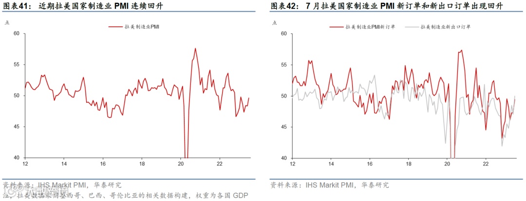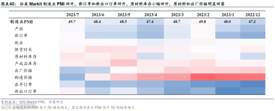 发达国家中美国订单分项明显反弹,亚洲其他地区、拉美等订单分项均有一定改善,但欧元区订单分项进一步下行。