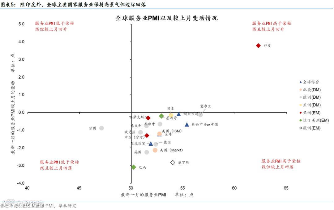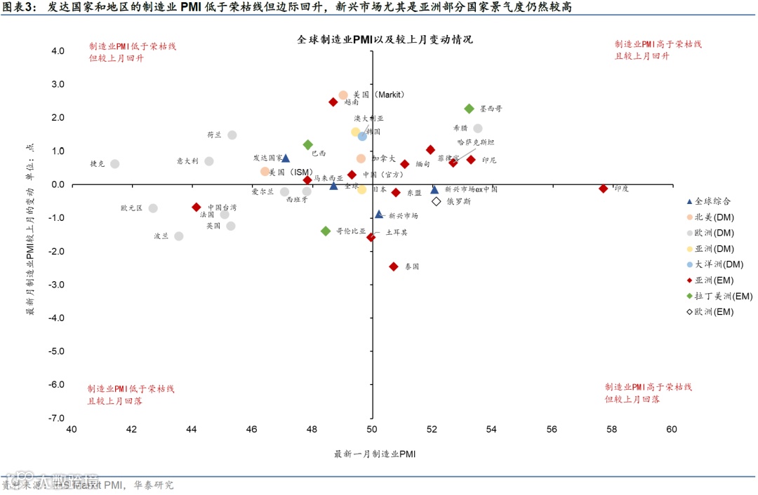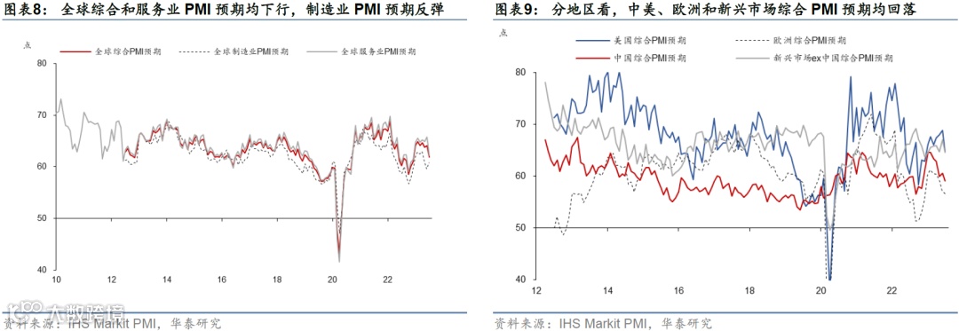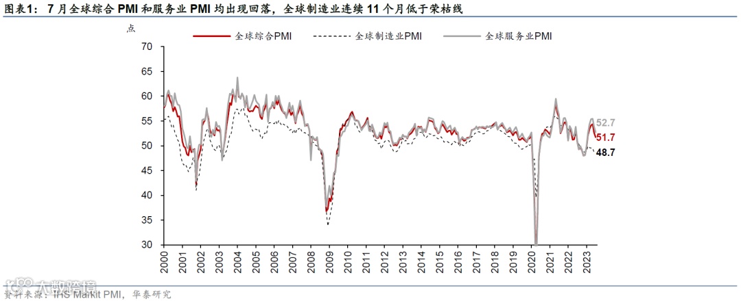 1.全球综合PMI下行1pp至51.7;制造业与服务业、各经济板块分化持续。