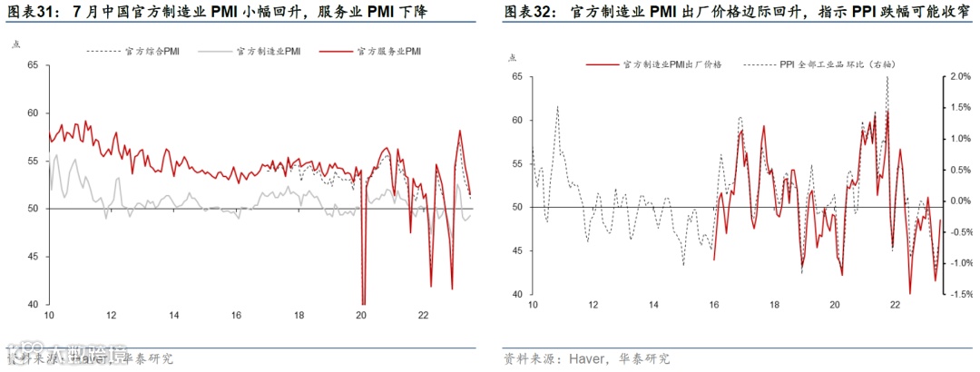 7月PMI概述:全球7月制造业PMI持平上月,持续低于荣枯线,服务业PMI继续走弱。全球景气度分化:制造业总体仍然较为低迷,但中美边际改善,欧洲回落较为明显;全球服务业普遍在荣枯线以上,除印度外的多数国家服务业景气度下滑。订单总体偏弱:制造业订单和新出口订单连续第3个月回落,分别降至47.7和46.4。库存分项小幅回升:制造业去库存是否结束有待进一步观察。价格分项小幅反弹:原材料价格和产成品价格分项小幅反弹,显示全球通胀仍在降温,但下降速度可能放缓。