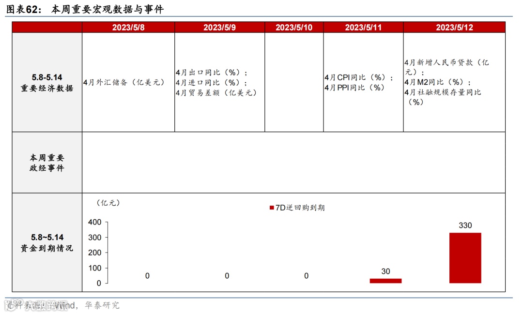 “五一”假期居民出行延续高景气度;物流景气度较往年同期有所下行,工业生产同比偏强,新房和二手房成交有所回撤,且土地成交同比走弱。人民币兑美元汇率小幅上行。本周重点关注4月外贸、通胀及金融数据。