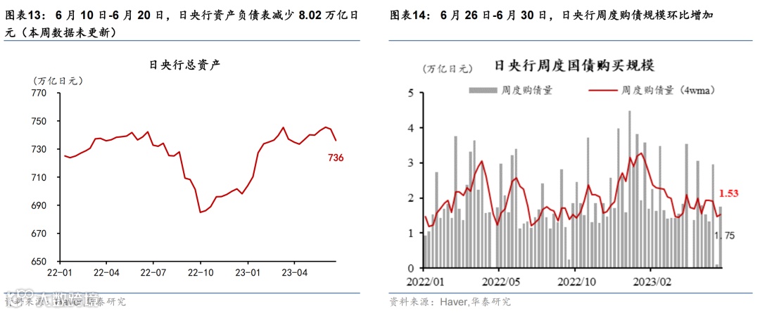 6月26日-6月30日,日央行购买国债1.75万亿日元,规模环比回升。6月29日,日本10年期国债利率0.41%,高于6月23日的0.39%,但低于3月8日的0.53%。