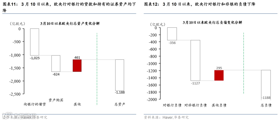 1. 资产端,欧央行总资产上升9亿;对欧元区银行的贷款增加11亿;证券资产下降11亿;其他资产上升9亿。