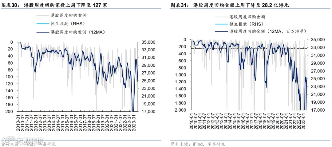 从港股风险偏好来看,不同主体风险偏好出现分歧。从港股估值角度来看,当前港股绝对估值和相对A股估值水位皆展现出投资性价比;资金结构方面,南向资金转向净流出、主动性外资亦在流出,上周产业资本回购总体金额则较上上周(周环比)大幅下降。