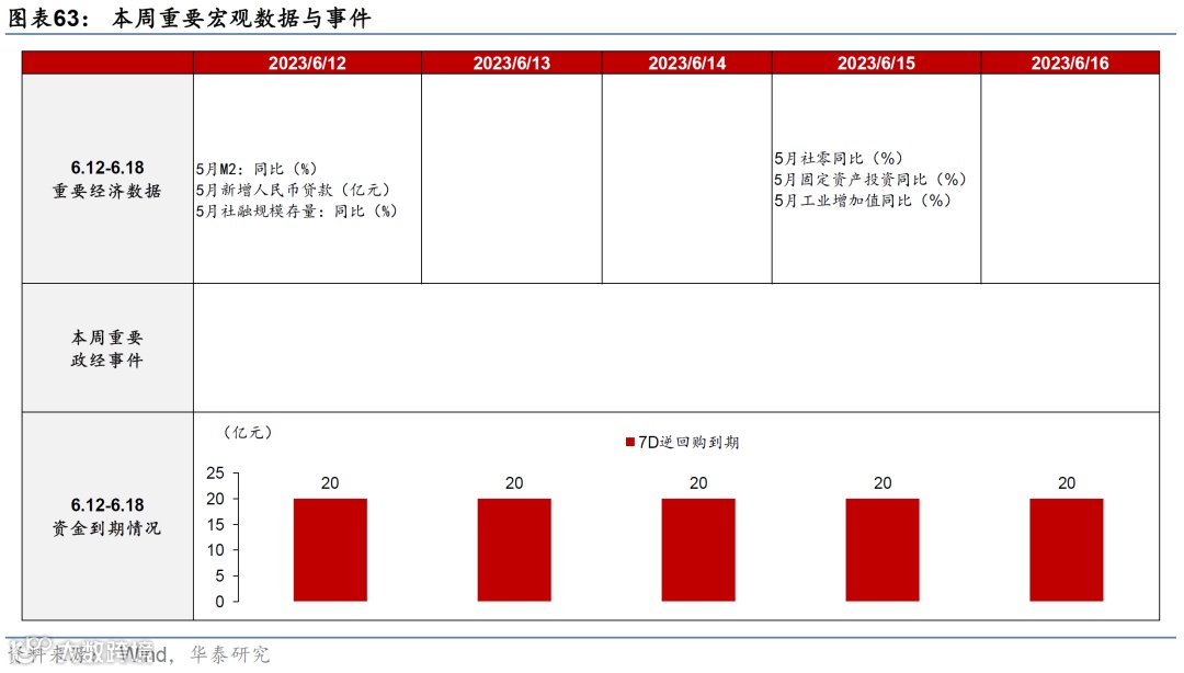 本周将发布5月金融和经济活动数据(6月15日),我们预计5月社融同比增速或将回落到10%以下,而5月工业增加值或将明显回落、低基数下社零同比或录得15%。