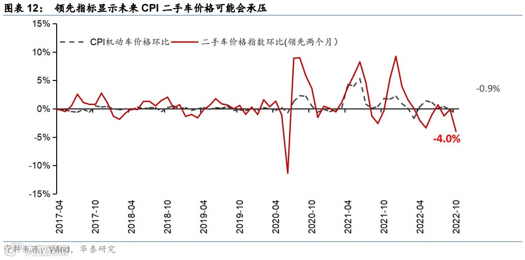 如我们此前分析,10月核心通胀低于预期主要源于能源、医疗服务、交通出行以及汽车价格回落,其中一些仍为暂时因素,持续性有待观察。1)10月医疗服务项通胀贡献由正转负,但主要是计算方法调整的一次性因素主导2)机票价格回落导致交通出行价格环比回撤、同比涨幅收窄。3)机动车价格尤其是二手车价格环比下降幅度较大(参见《美国核心通胀数月来首次低于预期》,2022/11/11)。