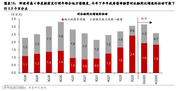 2、即使考虑4季度提前发行明年部分专项债额度,下半年政府债净融资可能拖累社融同比0.5个点。