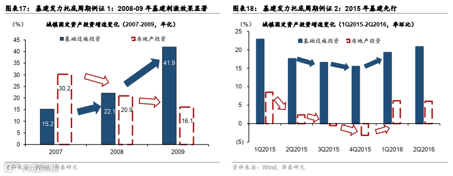 同时,短期内基建投资可能明显加速、以部分对冲地产周期的下行压力,但或不足以“稳增长”。历史经验显示,当地产周期下行时,稳增长政策往往会发力基建投资,这次也不例外(图表17和18)。上周五(7月22日)召开的国常会强调用好现有政策,尤其是发挥基建投资作为稳增长的主要抓手(参见《国常会:促基建,但或不足以稳增长》,2022/7/23)。虽然基建投资占固定资本形成总额的体量与地产投资可能大体相当,但考虑地产对相关服务业、以及消费的拉动作用,地产相关产业链对增长的影响可能明显超过基建。