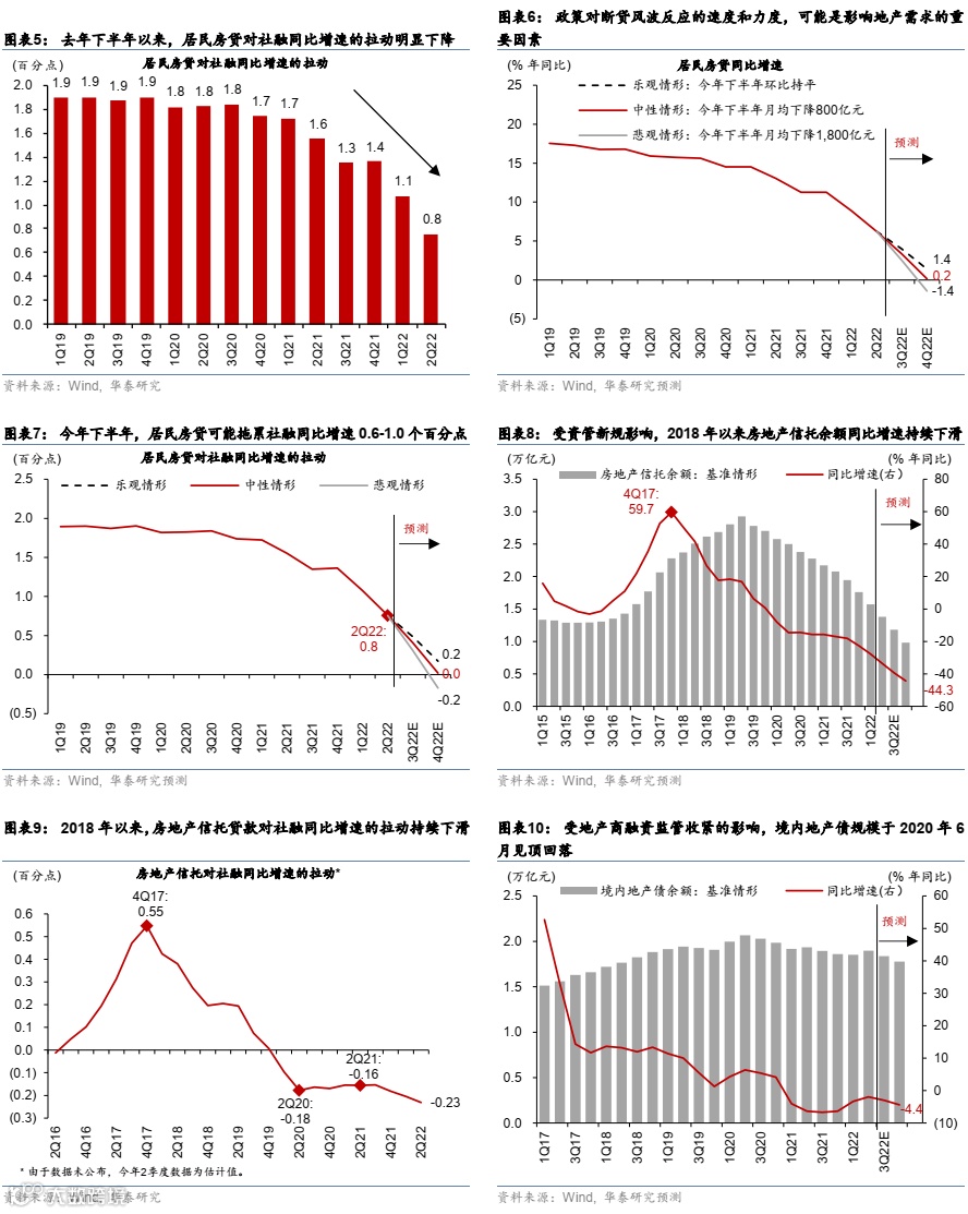 1.地产周期下行超预期。如果地产周期下行幅度超预期,其对社融增速的拖累可能超出我们的预测区间。