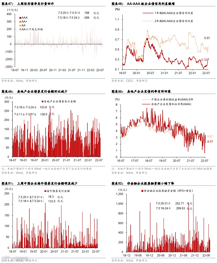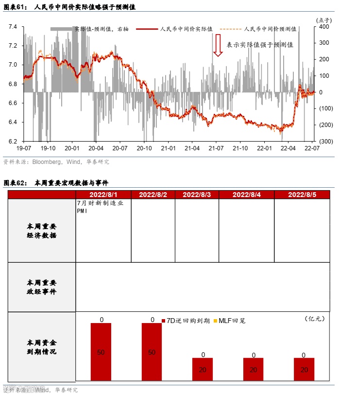 中央政治局会议关注保底线,制造业利润分化加剧,7月PMI走弱至49%。中共中央政治局7月28日召开会议,与7月23日国常会主要指导思想大体一致:经济保“底线”,但可能不会加大刺激力度、或有新的刺激性政策。2022年6月工业企业利润同比增速从5月的-6.7%上升至0.8%,但除去能源和汽车等行业,2季度内需行业的利润同比可能收缩达到两位数水平。7月PMI从上月的50.2%下降至49%,再次跌入收缩区间。内需走弱、高耗能行业景气度回落是拖累PMI下降的主要原因。此外,建筑业继续扩张、服务业延续恢复态势推动非制造业PMI维持在53.8%,但也低于上月0.9个百分点。
