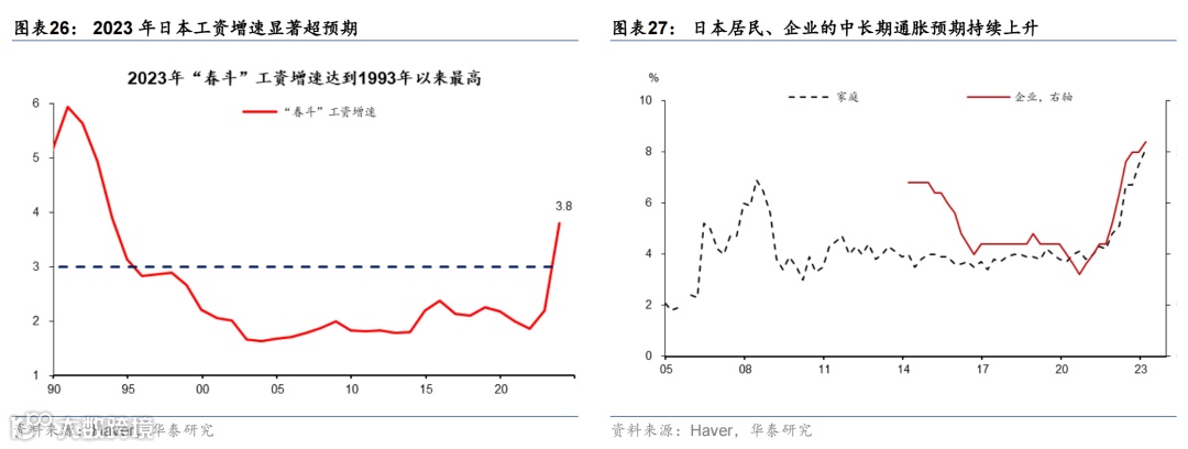 中长期看,摆脱通缩以及TSE改革有望结构性提振日本股市盈利和估值水平,提振日本股市的长期回报,但也存在一定的不确定性。第一,2023年以来的工资谈判增速显著超过此前预期,居民和企业的长期通胀预期也明显上升,日本已经走出通缩,有助于结构性提高企业盈利。第二,东京证券交易所(TSE)的改革已经取得一定成效,中长期看能否持续存在不确定性。