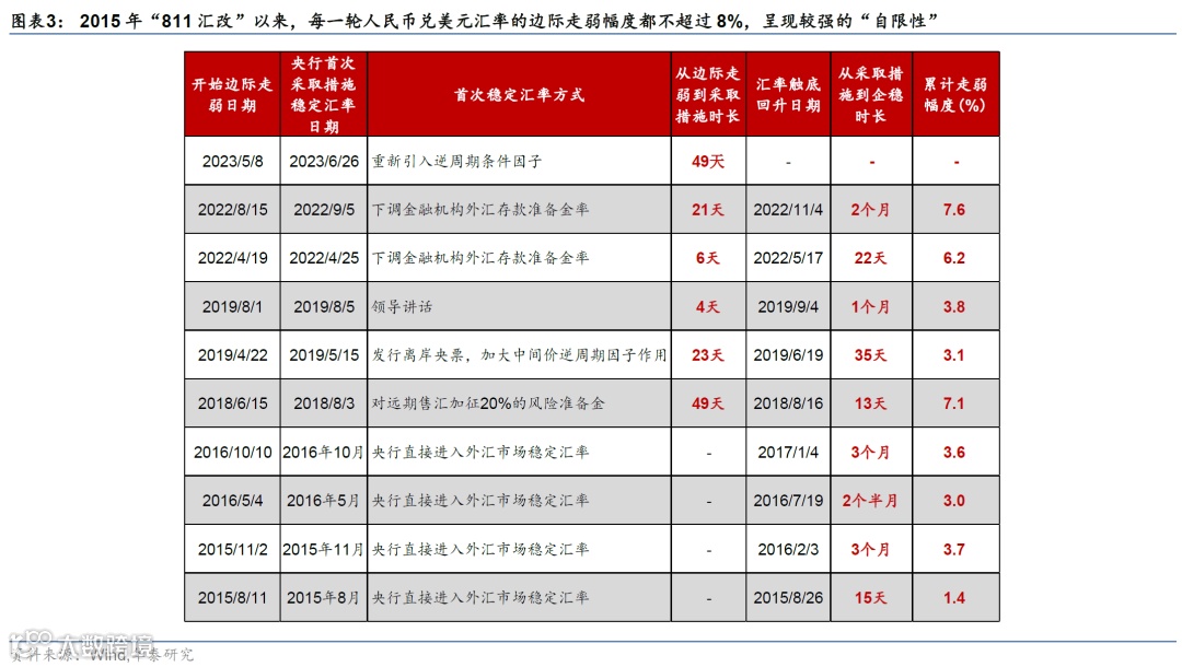 1. 首先,从时点上看。2018年以来每一轮人民币波动周期的经验看,从央行调整到汇率触底回升通常还历经半个月至两个月的时间,就目前进度推算,阶段性低点有可能出现在8月底前(图表4)。