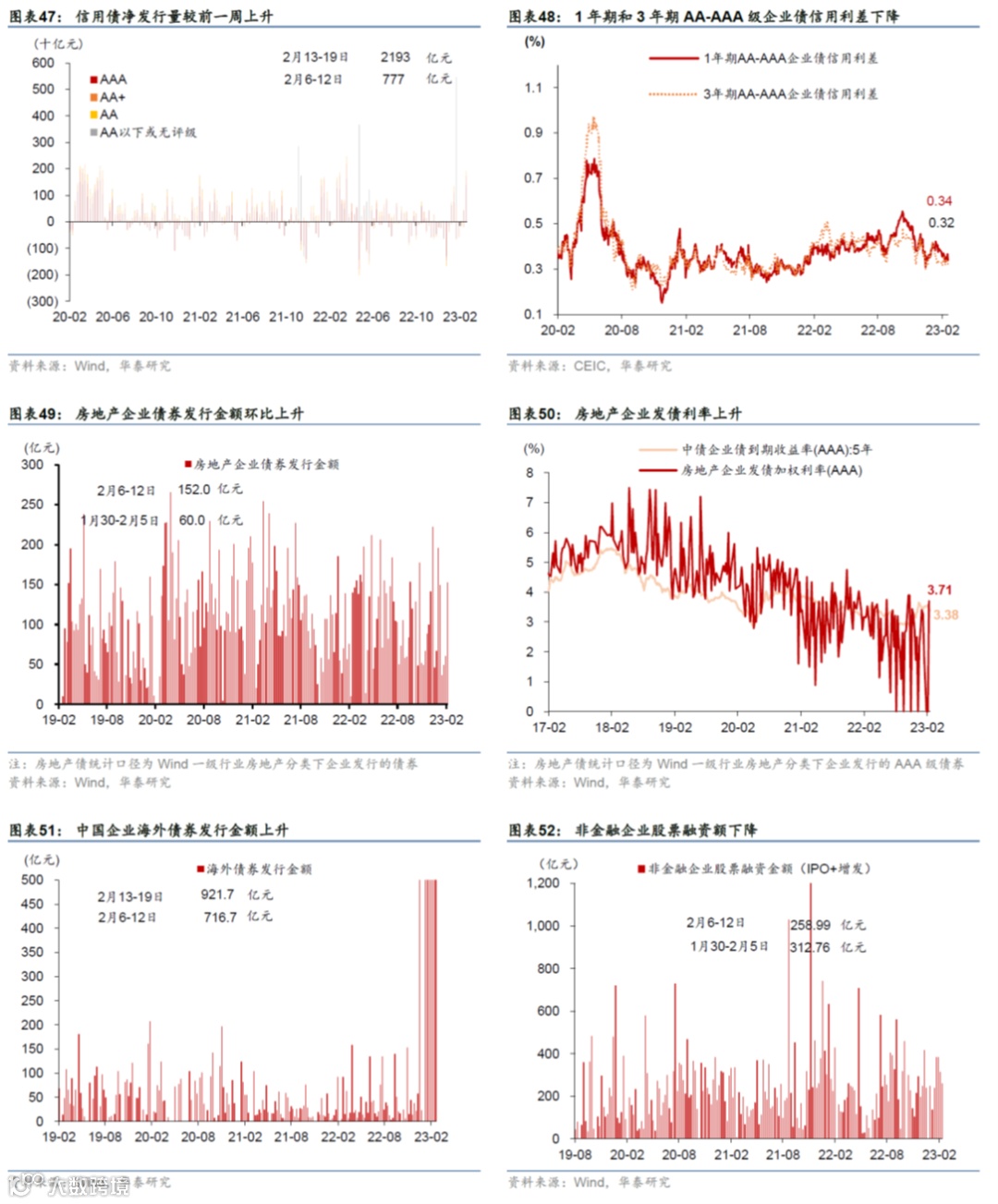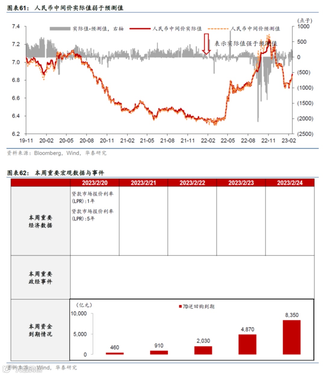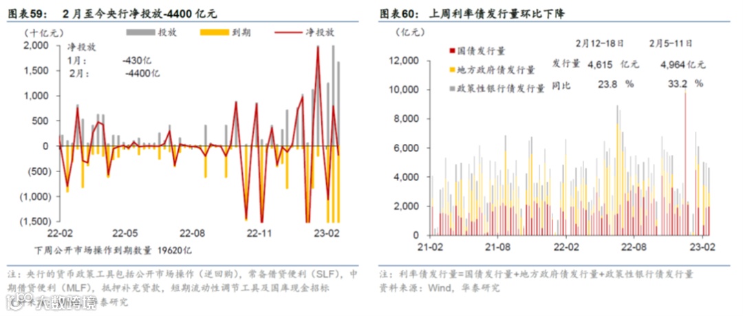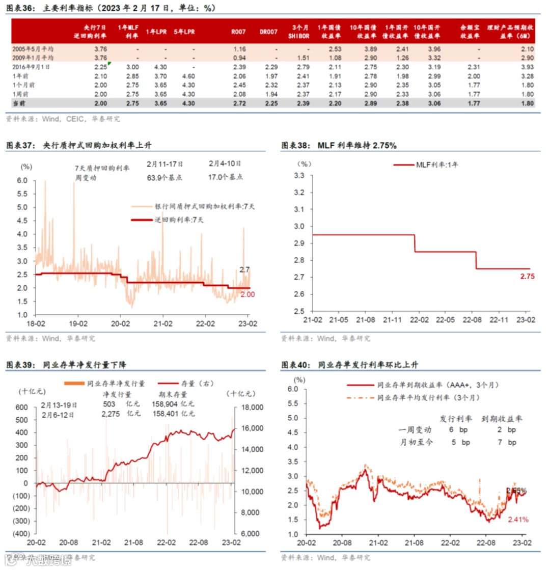 上周居民出行、消费等数据大多较去年农历同期继续回升、工业生产等指标亦有所回暖,而物流和地产相关指标仍偏弱。人民币兑美元汇率下行,银行间流动性趋紧。2月MLF超量续作而利率不变。此外中国证监会发布全面实行股票发行注册制相关制度规则。