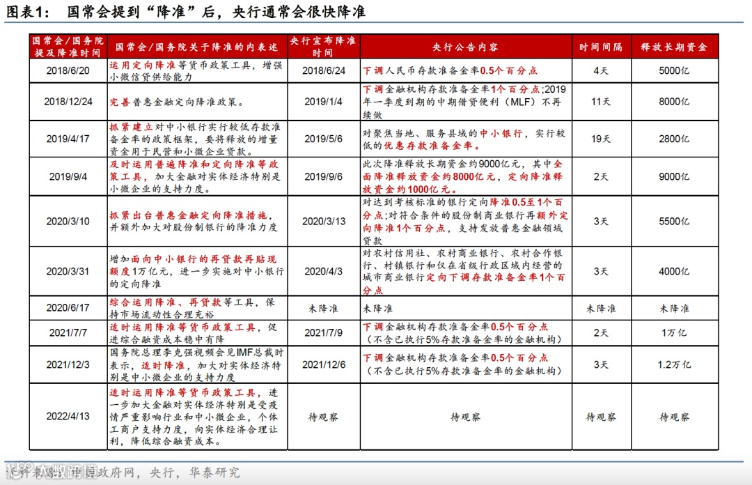 时隔9个月,国常会再次预告降准,并强调加大纾困稳增长力度。今晚(4月13日)召开的国常会指出,适时运用降准等货币政策工具,加大金融对实体经济的支持力度,向实体经济合理让利,降低综合融资成本。这是继去年7月7日之后,国常会再次提及“适时运用降准等货币政策工具”。此外,国常会也强调将继续加大对疫情影响行业的纾困力度,促进汽车家电消费需求,并加快基建力度等逆周期政策,具体政策细节仍有待落地。