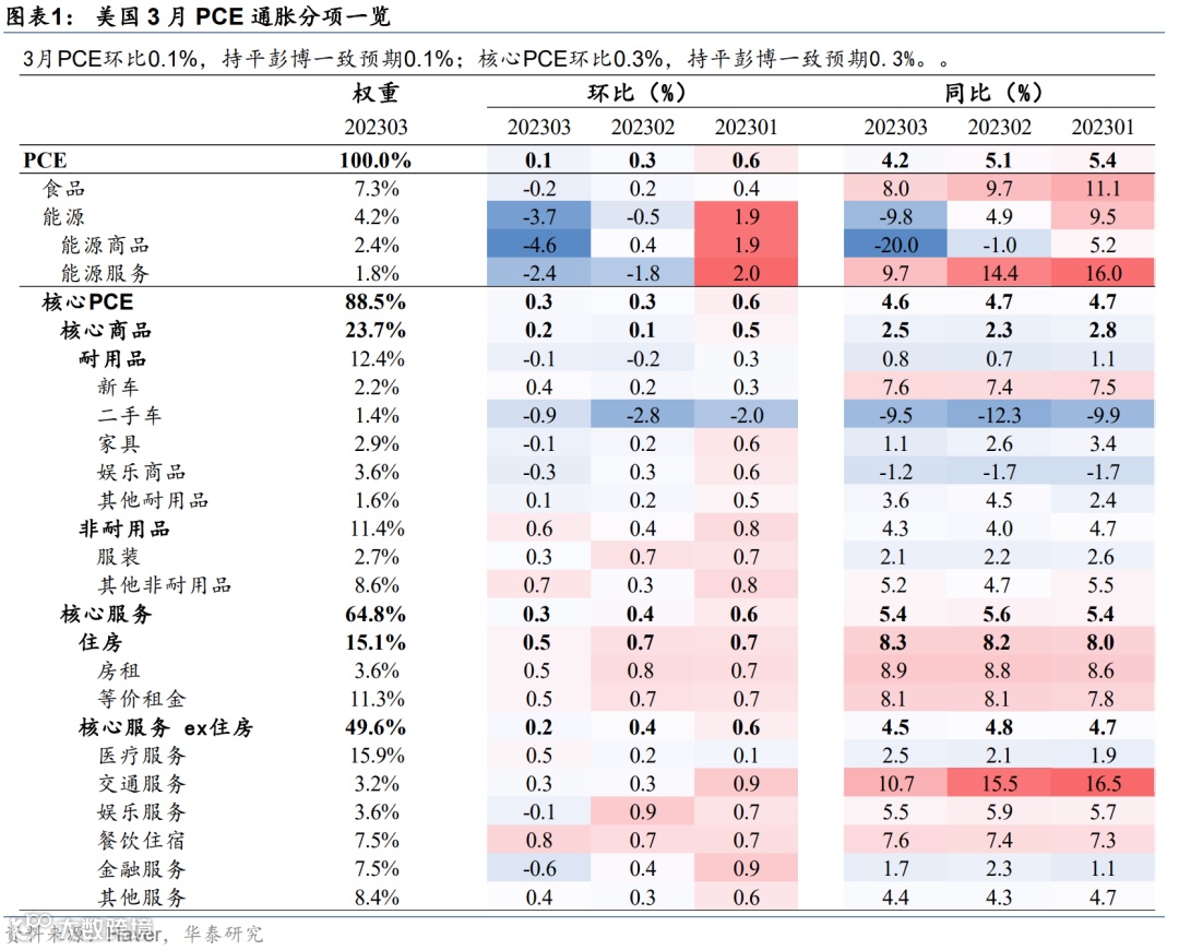 本文摘自2023年4月29日发表的《美国核心PCE继续下降、符合预期》